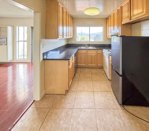 This top-floor studio is bright and comfortable, featuring engineered hardwood floors and a spacious eat-in kitchen with a stove, refrigerator, and dishwasher. The open layout feels airy, and the east-facing balcony adds extra space to enjoy beautiful Southern California weather year-round. Parking is available for just $2/month! The gated property offers two laundry rooms and a community pool.